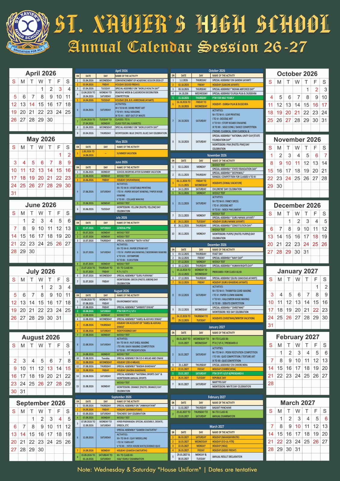 | 1 | 01.04.2025 | Tuesday | School starts for session 2025-26 |